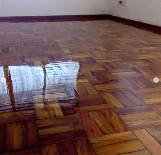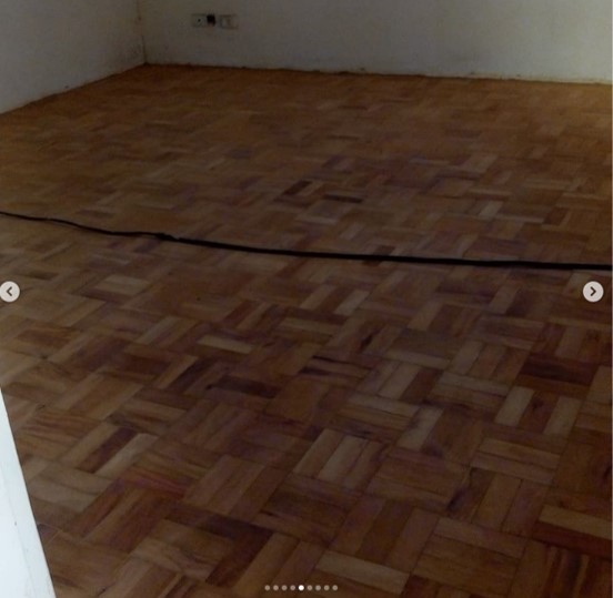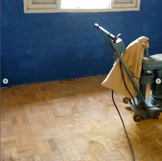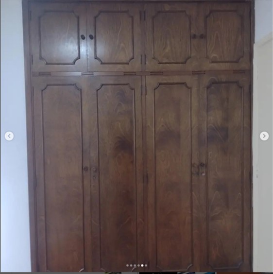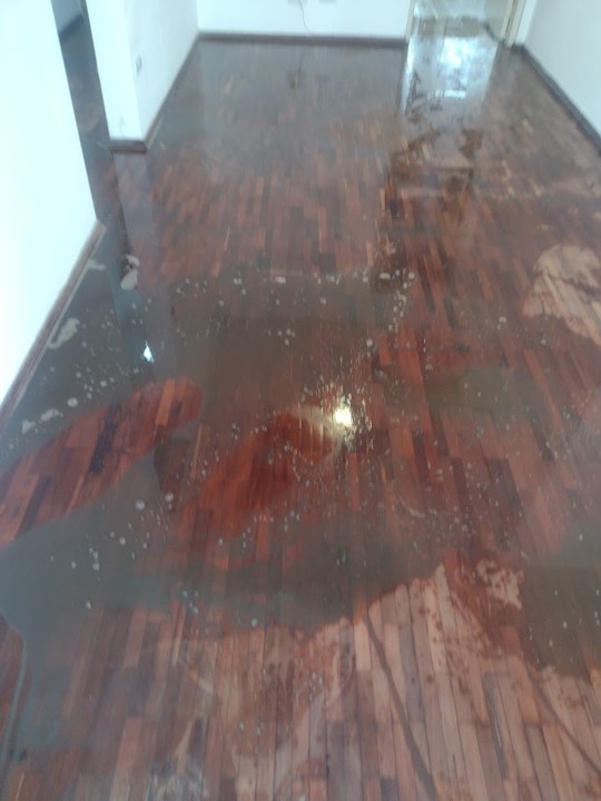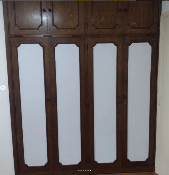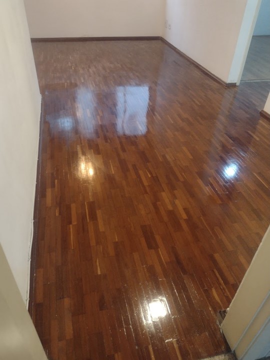 Remoção de ceras antigas,limpeza pesada, aplicação de cera nova no piso parquet. Envelopamento branco fosco nas portas dos armarios.
