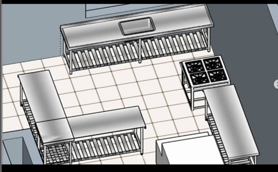 Layout para posicionamento de equipamentos para um restaurante delivery.