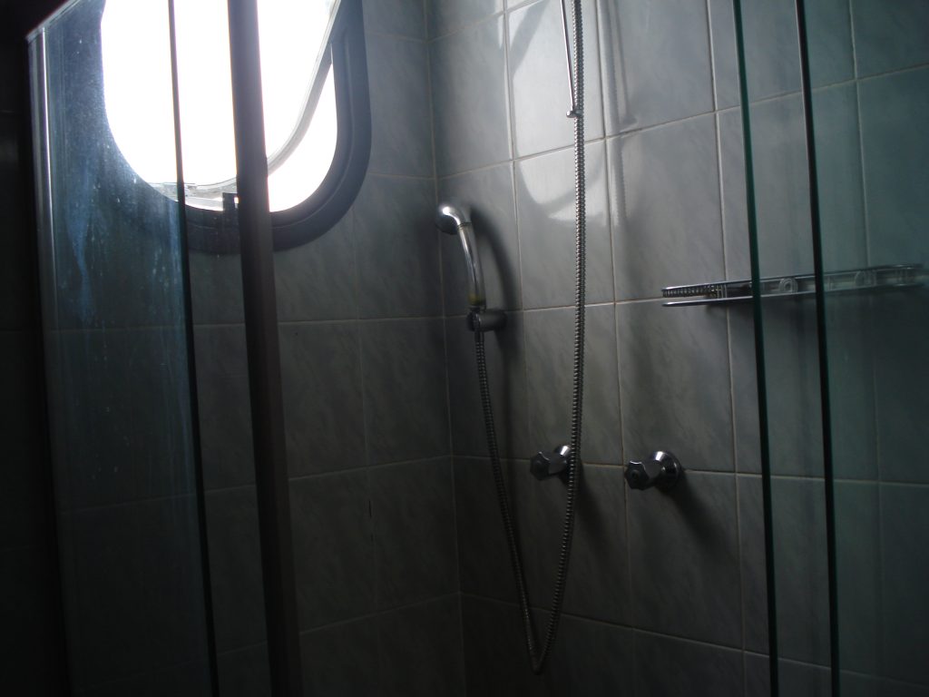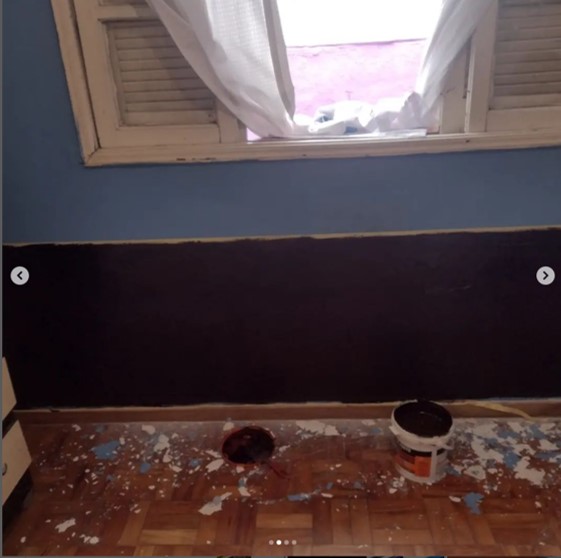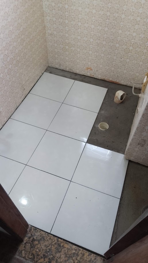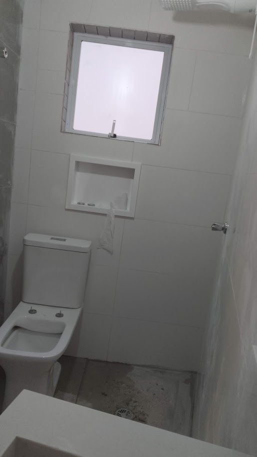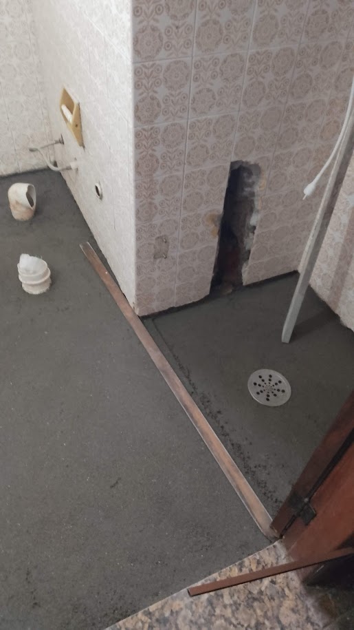 Residencia Montanaro Pintura remoção de infiltração e umidade, pintura das esquadrias de madeira, recuperaçao da laje e tratamento anticorrosão das ferragens expostas, troca de piso, remoção do bidê, criação de nicho no box para melhorar acessibilidade, conserto de vazamentos em geral nos registros, recuperação de azulejos de epoca.