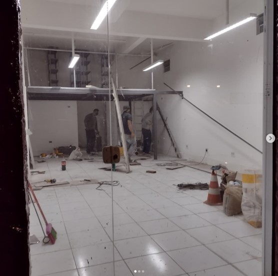 Adequação de loja, Remoção do forro, confecção de mezanino metálico piso painelwall, iluminação, pintura, comunicação visual e site